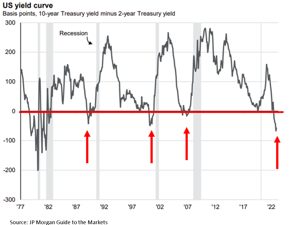 Even though no single source of data is an accurate predicator as to whether or not we will end up in a recession in 2023, the chart that I am about to show you is being weighted heavily in the investment decisions that we are making for our clients.