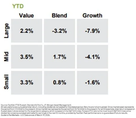 Large cap value is up about 2.2% year-to-date