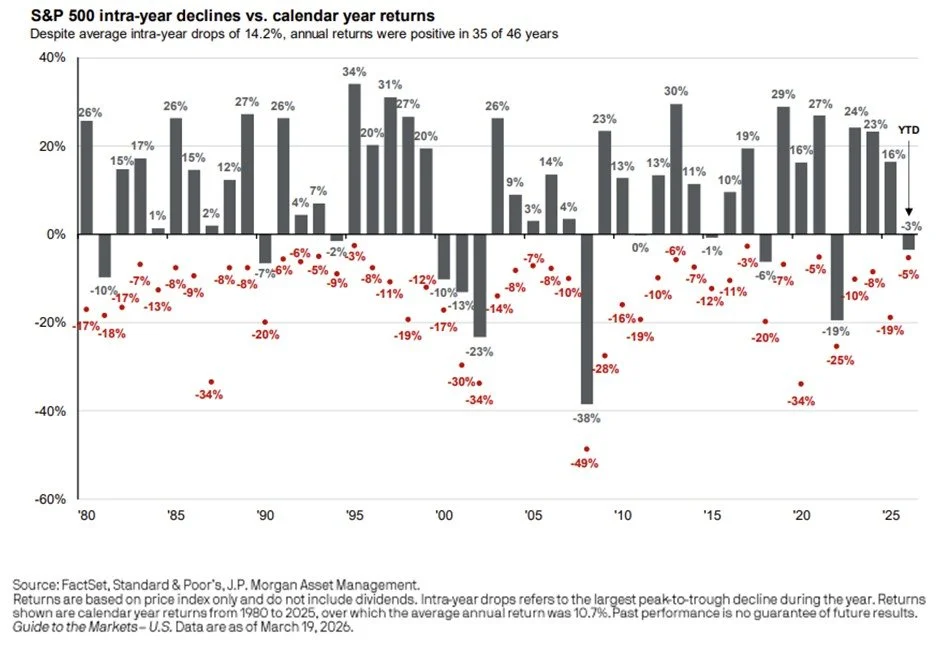 The chart below is a great reminder that selloffs and market volatility are normal even during good years for the stock market.