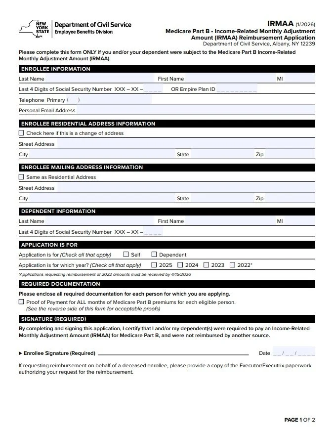NYS Retiree Medicare Part B and IRMAA Reimbursement Process Explained