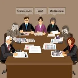 The coach or mediators serves as a neutral. They coordinate the meetings, ask questions to help facilitate the negotiations, and help set and enforce the ground rules for the collaborative process. A child specialist can be involved in specific meetings to coordinate the child custody agreement or a financial specialist can be called in to assist in equitable distribution of the martial assets.